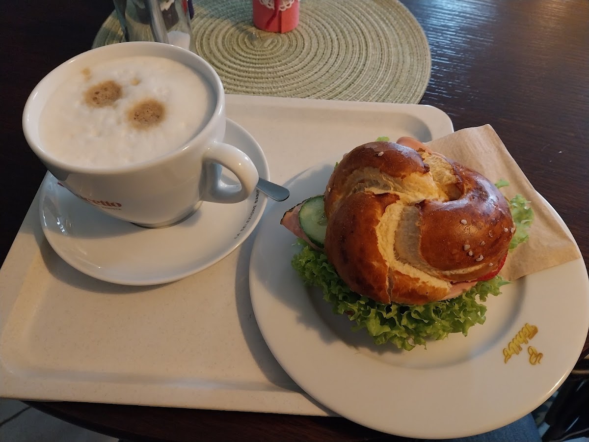 The baked goods stand out for their freshness and variety. The classic breads and pretzels have a homemade quality that speaks to traditional baking methods, and the café’s desserts, such as cheesecake or cream slices, add a sweeter option to the mix. Coffee here matches the quality of the pastries — solid, well-balanced, and served with care.